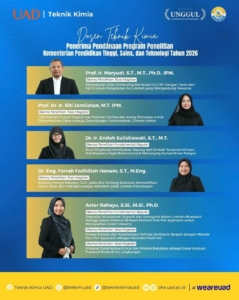 Selamat dan Sukses: Lima Dosen Teknik Kimia UAD Raih Pendanaan Program Penelitian Kementerian Pendidikan Tinggi 2026